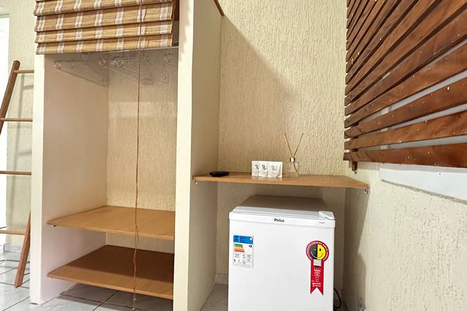 Acomodação perfeita para 02 hóspedes com uma cama casal, TV 43” com pacote de canais Vivo TV, varanda com vista para os jardins e as seguintes comodidades: