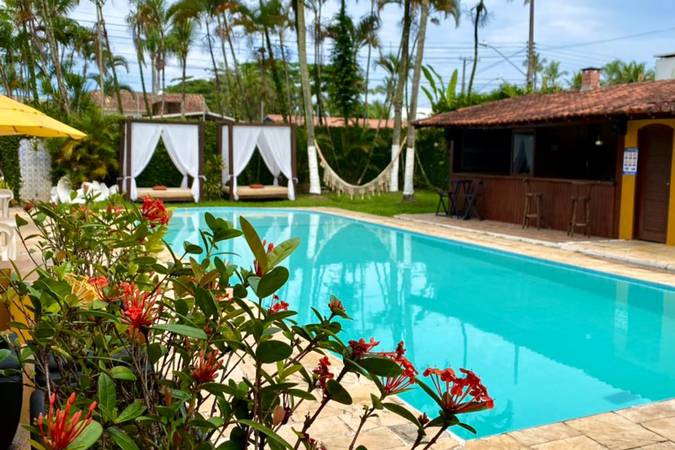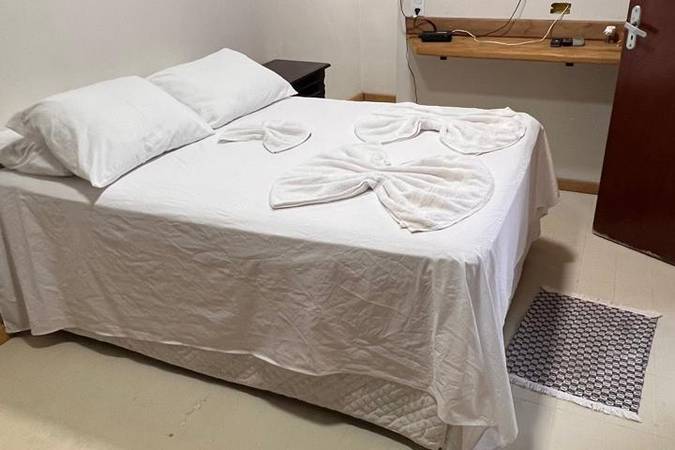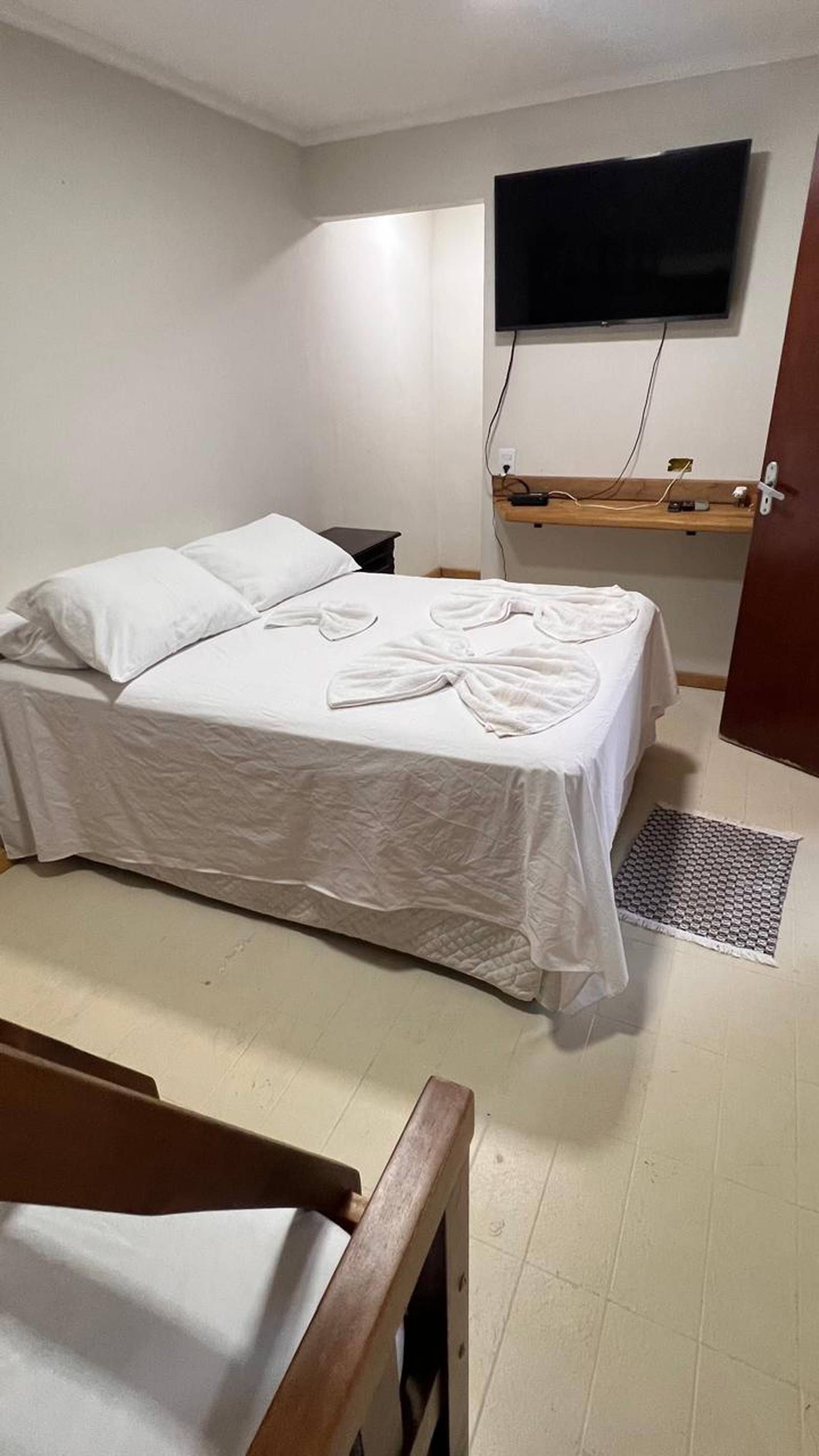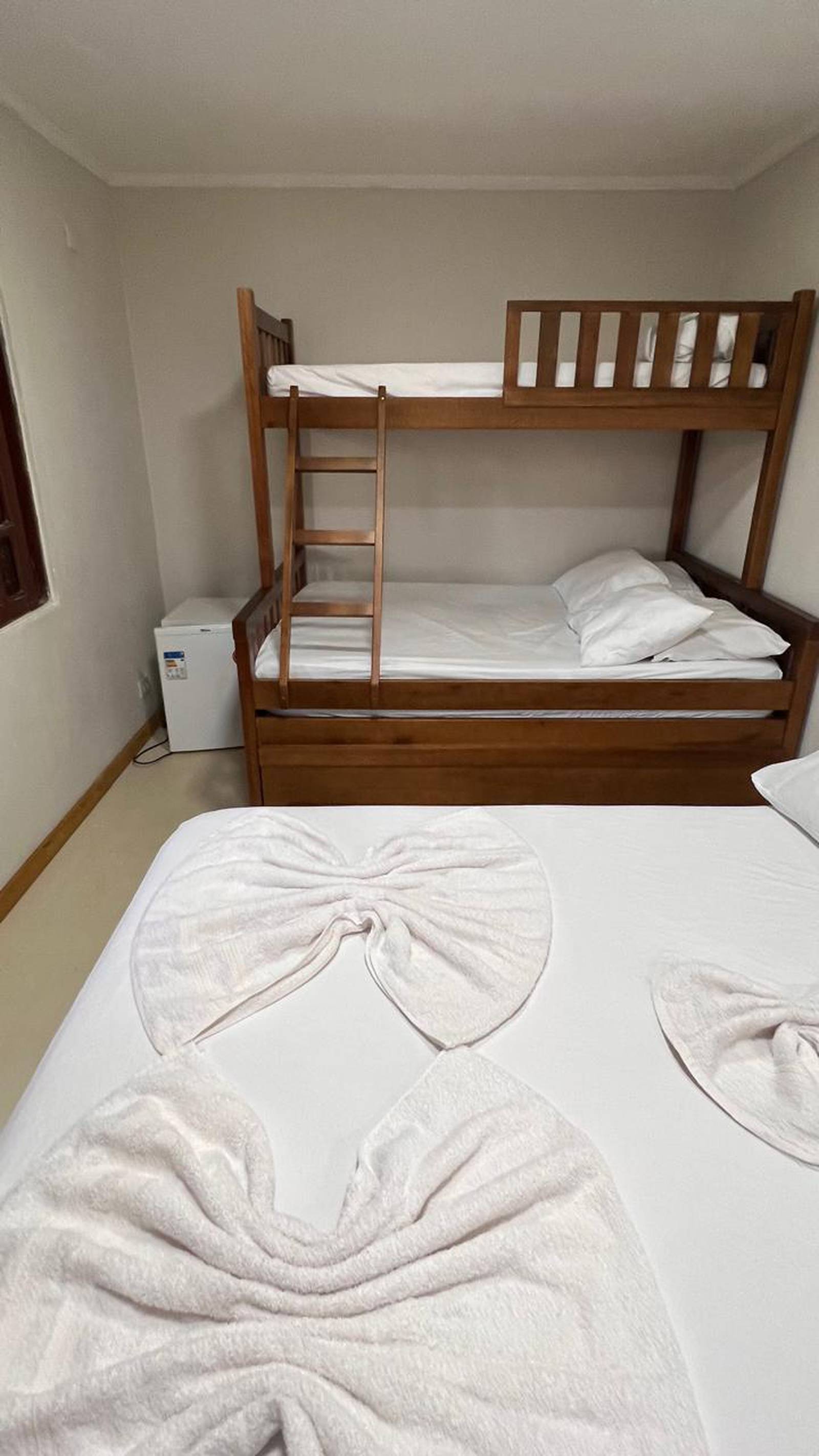 Acomodação perfeita para 05 hóspedes com duas camas casal + beliche com cama solteiro, TV 43” com pacote de canais Vivo TV, varanda com vista para a piscina e as seguintes comodidades: